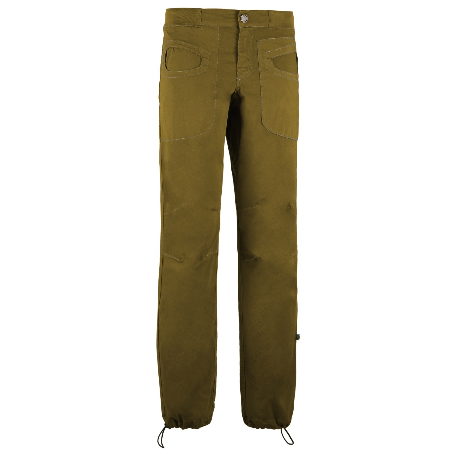 - Harjanpidike, joustavat lahkeensuut, joustava vyötärö, Logolaatta, säädettävät lahkeensuut, säädettävä vyötärö, esimuotoillut polvet