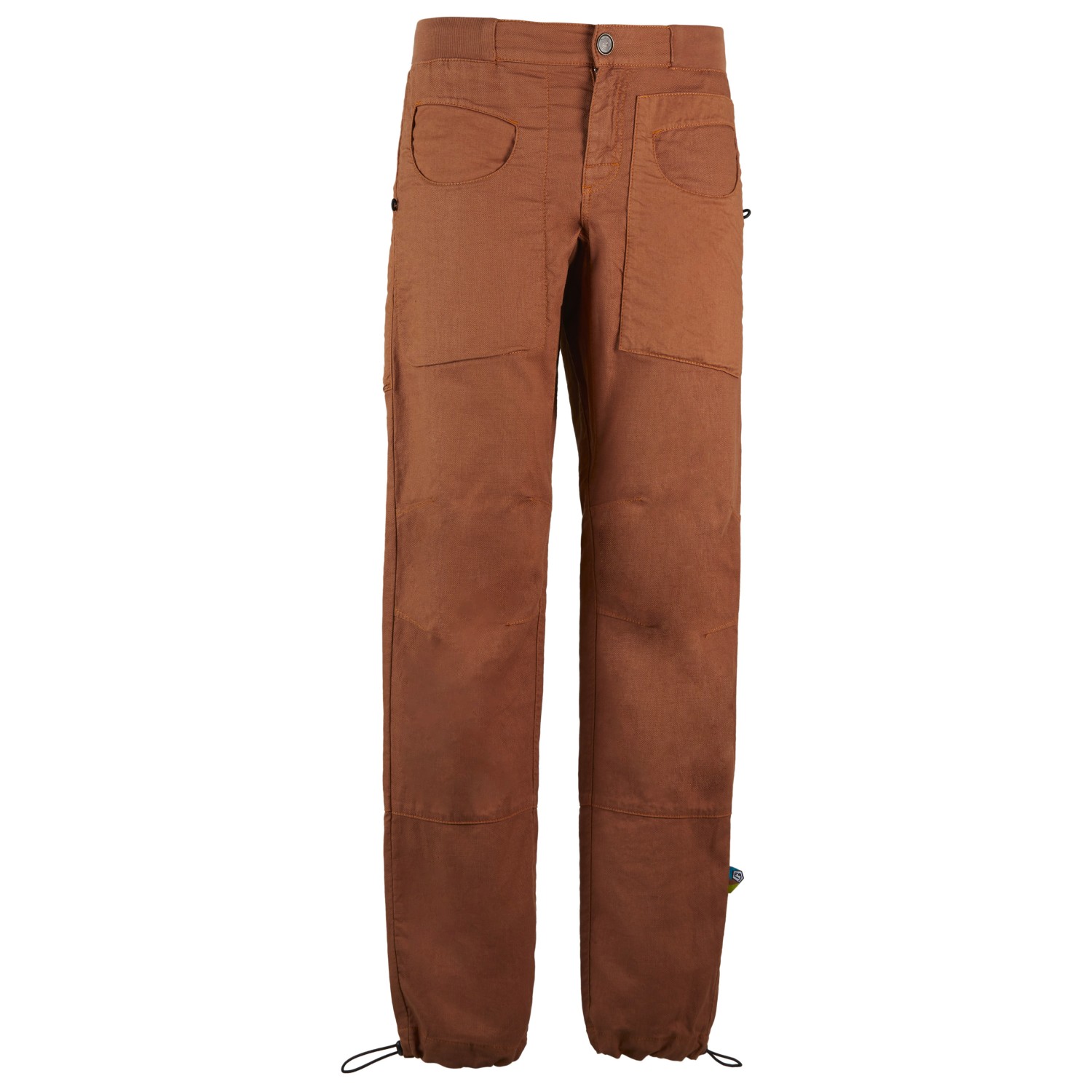 - Harjanpidike, joustavat lahkeensuut, joustava vyötärö, Logolaatta, säädettävät lahkeensuut, esimuotoillut polvet