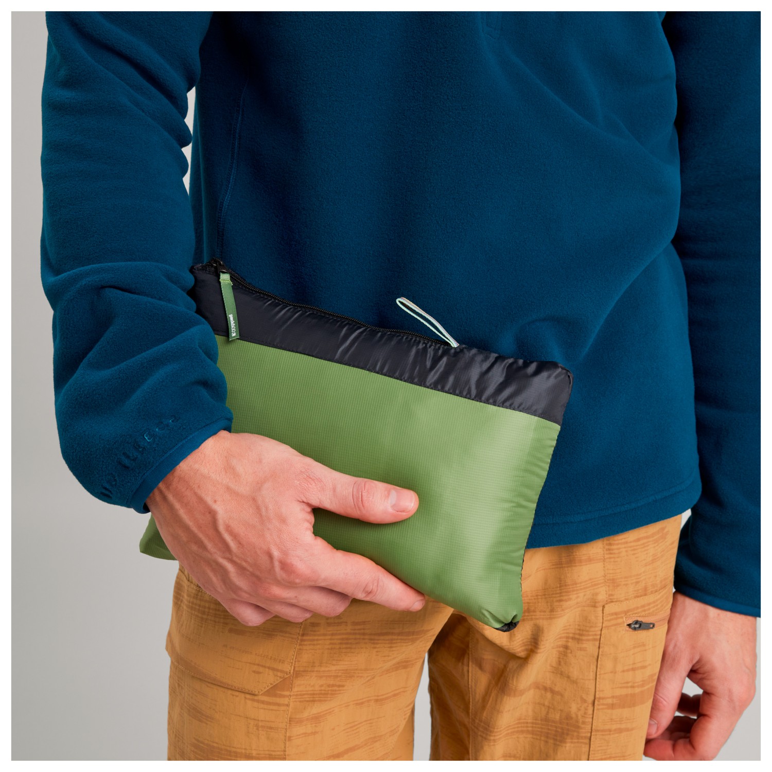 - joustavat hihansuut, voidaan sijoittaa omaan taskuunsa, logopainatus