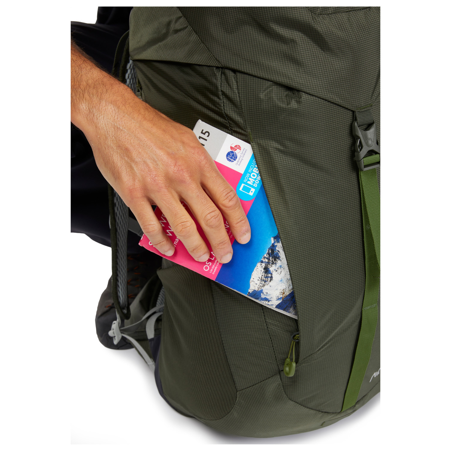 - 2 lantiovyötaskua, 2 sivulokeroa, vaellussauvojen kiinnittimet, kiinnityshihna(t) etupuolella, vetoketjullinen etutasku