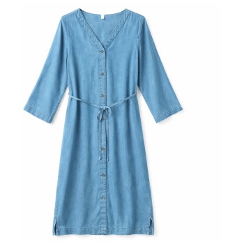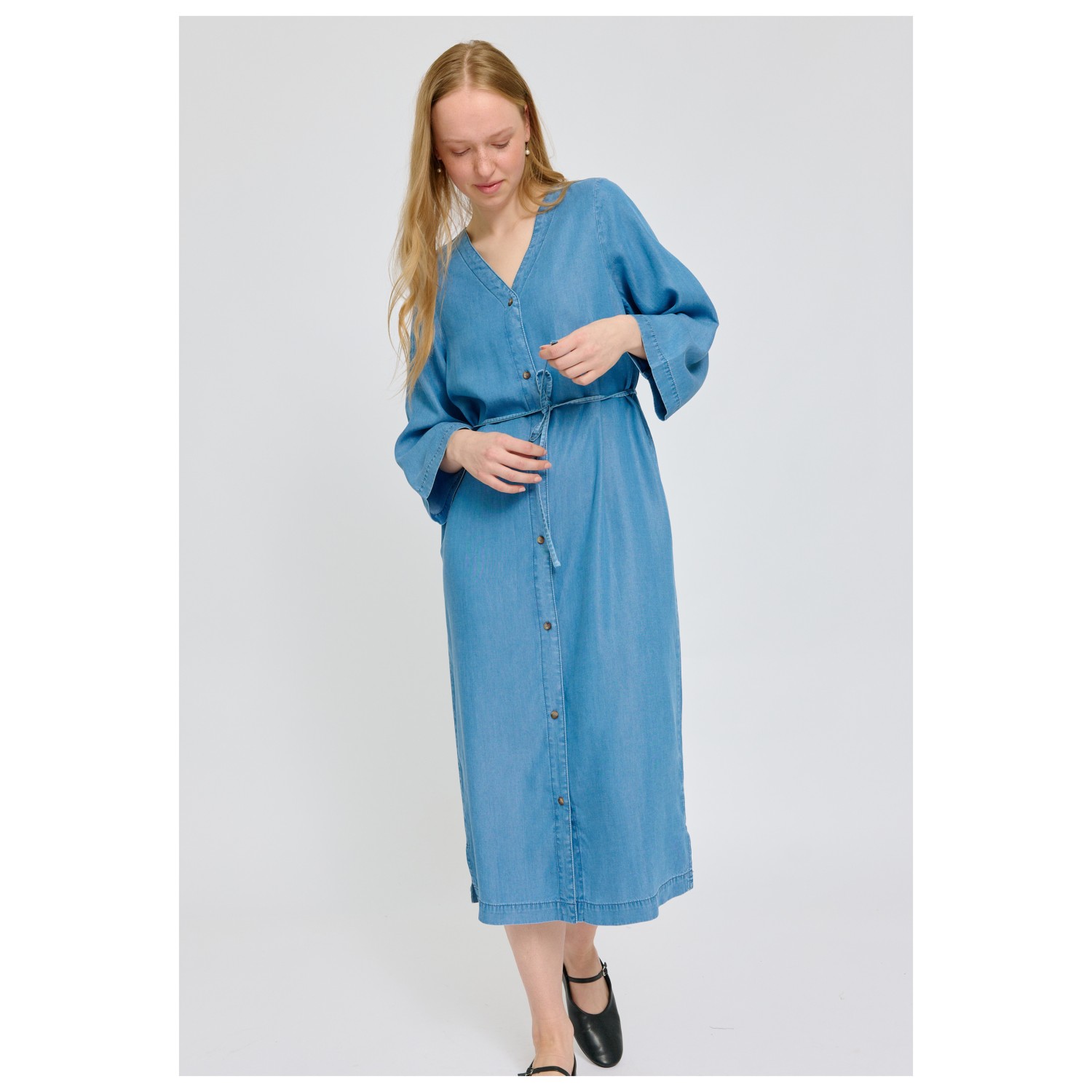 Mazine - Women's V-Neck Tencel Midi Dress - Hame