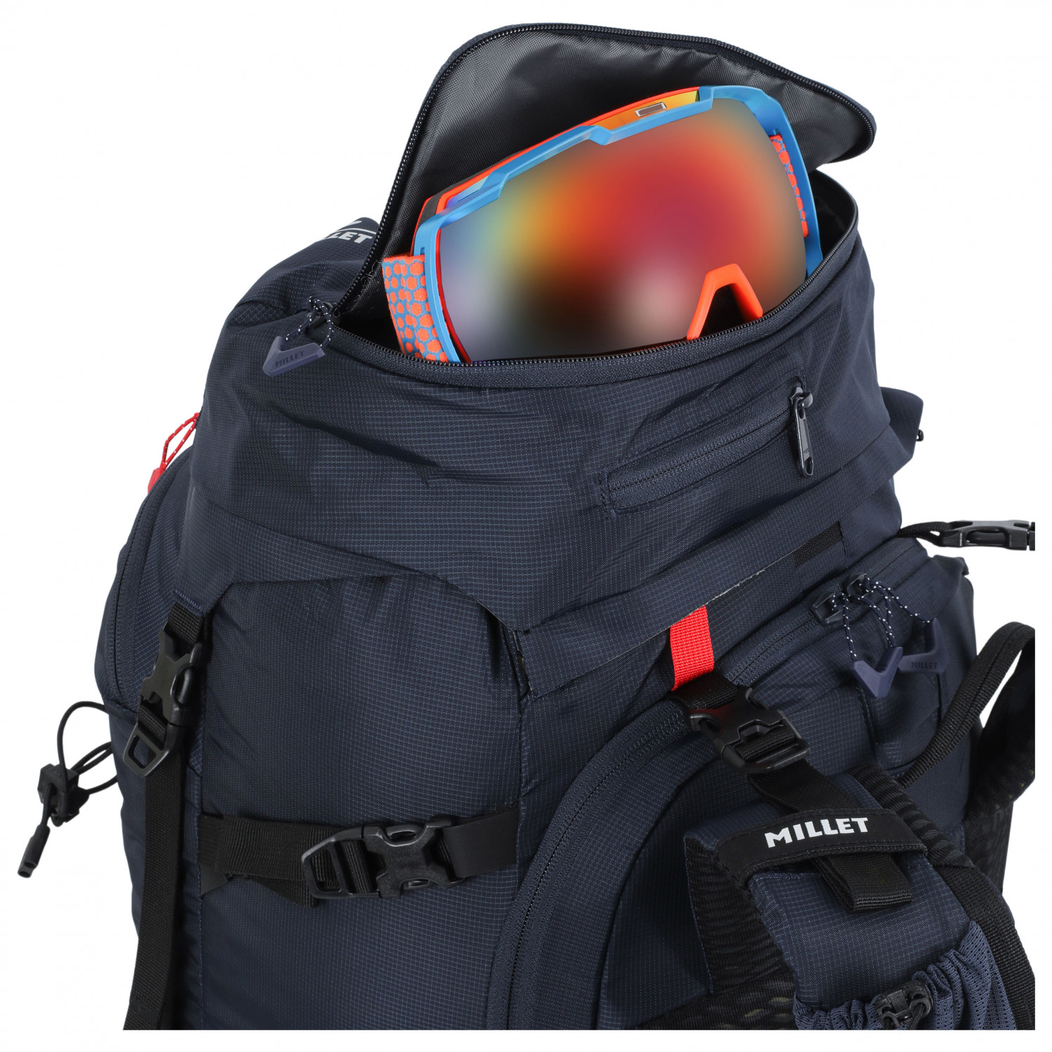 - jäähakun-/sauvanpidike, kypäränpidike, lumivyöryetsintälaitetasku, köysipidike, skiboard-/lumilautapidike