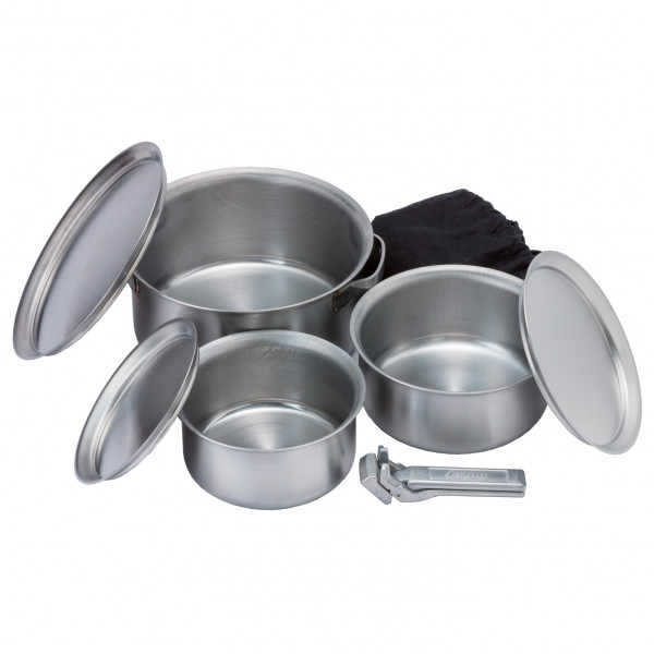 - 3 kattilaa (1l, 1,5l, 3l); 3 kantta; pihdit (magneettiset); pakkauspussi