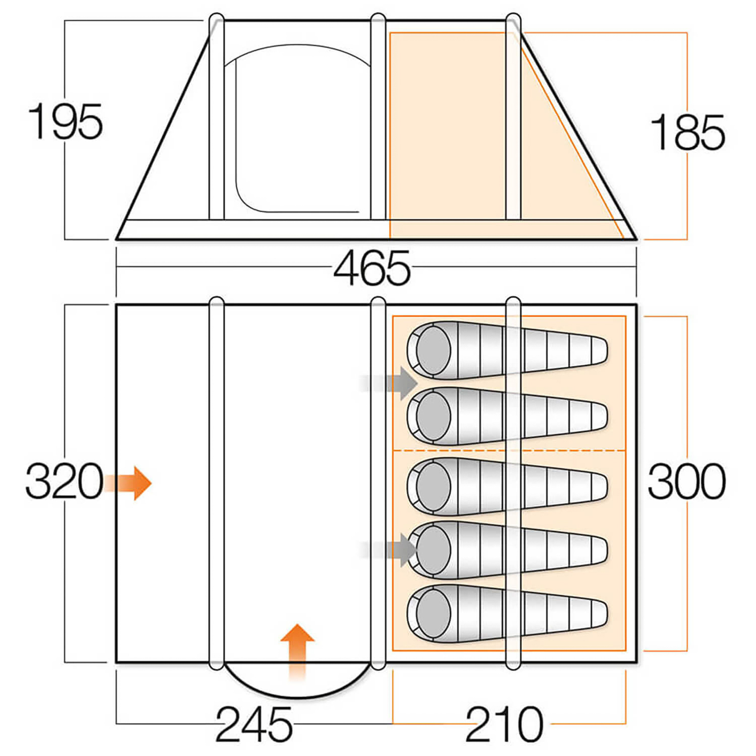 - 465 x 320 x 195 cm (L x W x H)