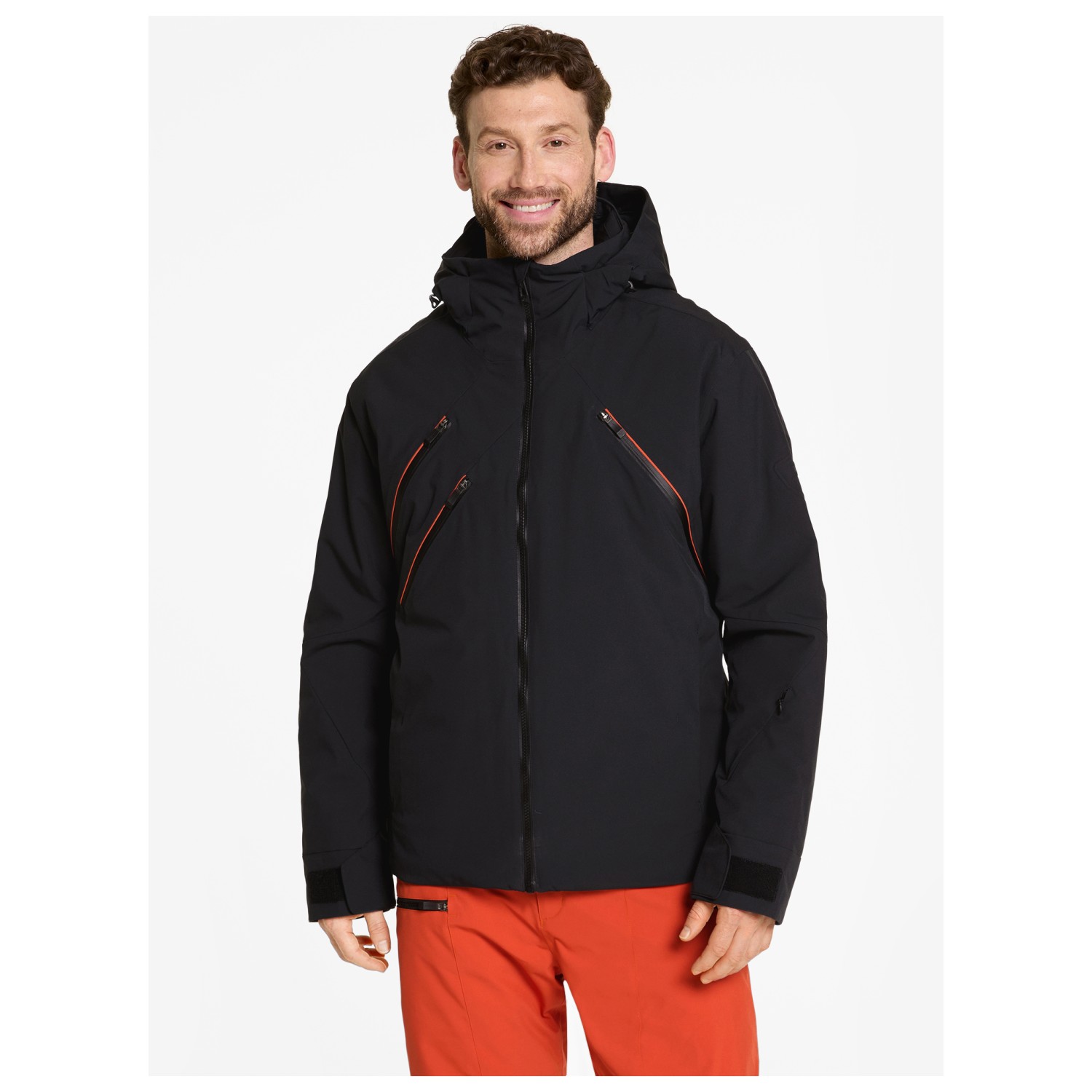- 1 vetoketjullinen rintatasku, 2 vetoketjullista etutaskua, Hissilipputasku
